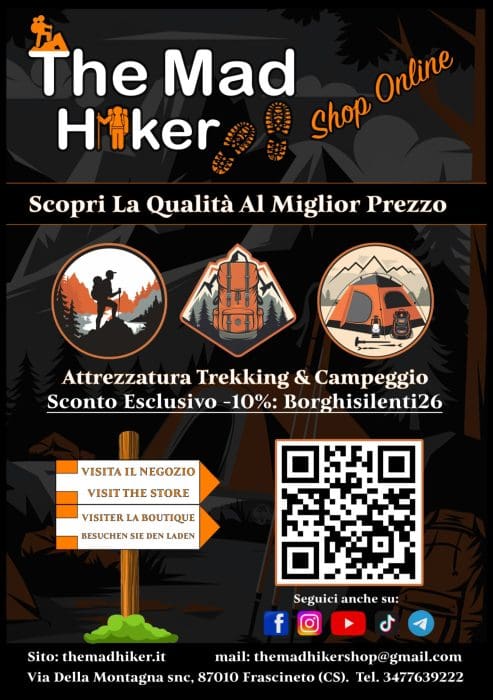 104 pagine con tutti i dettagli necessari all’organizzazione, inclusi alloggi e aggiornamenti in formato cartaceo. La guida cartacea del CAMMINO DEI BORGHI SILENTI aggiornata è disponibile soltanto sul nostro sito, con questa potrai organizzare uno degli itinerari più belli ed affascinanti d’Italia.